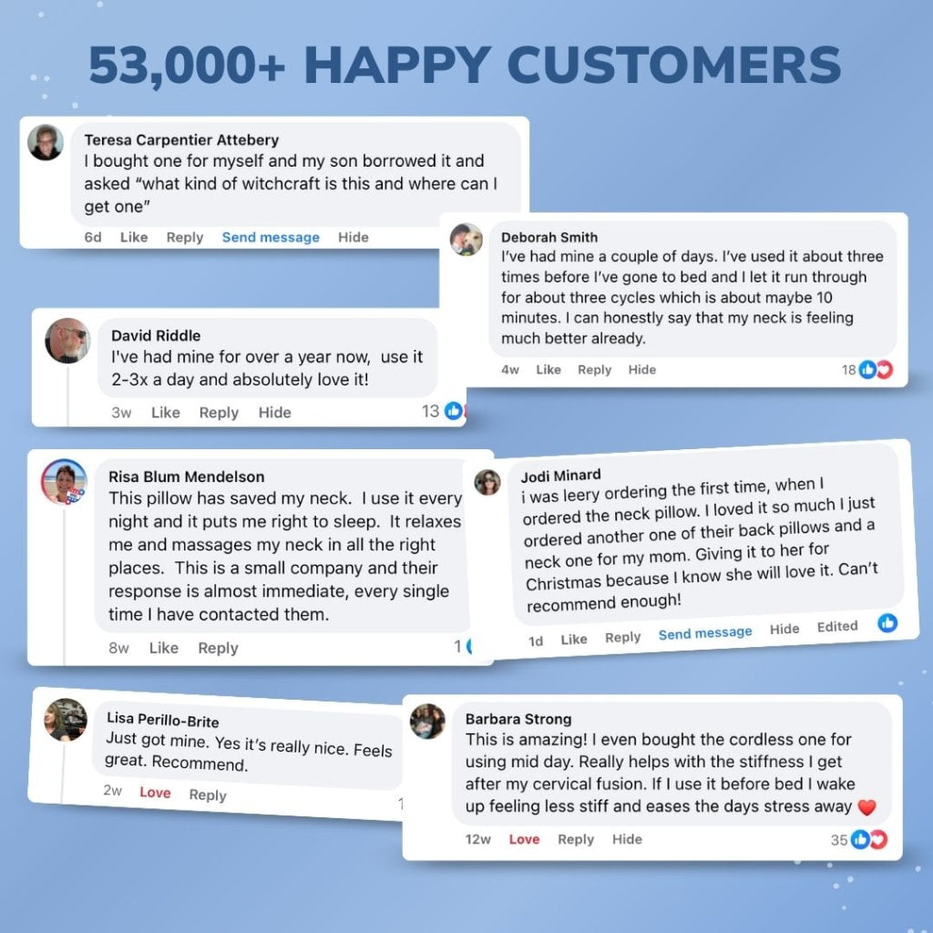 Watch real customers unwind with our 3-in-1 neck pillow massager—cozy, supportive relief at home or on the go.